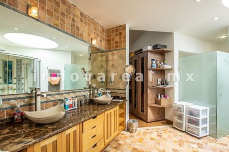 En sótano tiene bar, 1/2 baño, escalera a bar, sala de juegos, sala de tv, salón de fiestas, alberca, baño, cuarto de maquinas, patio de servicio, área de lavado, cuarto de servicio con baño. sótano escalera para acceso a bar y cava.